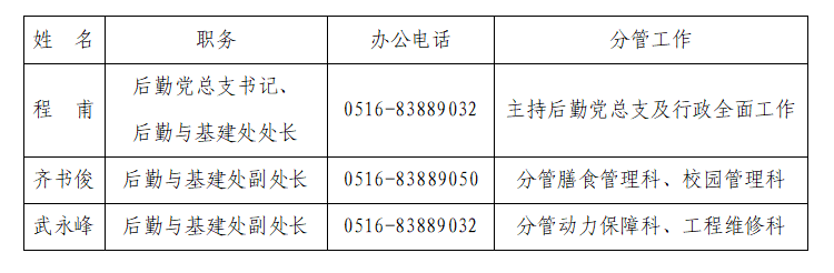 后勤与基建处领导及分工